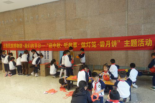 月滿圓滿,象征團圓、祥和、豐收的中(zhōng)秋佳節即将來臨,為(wèi)大力弘揚中(zhōng)華民(mín)族傳統文(wén)化,營造熱烈喜慶、文(wén)明和諧的節日氛圍,讓廣大師生及民(mín)衆認知傳統、尊重傳統、繼承傳統、弘揚傳統,9月11日下午,來自西山(shān)區(qū)求實小(xiǎo)學(xué)的50餘名(míng)師生及家長(cháng)到我館參加了“聽故事做燈籠嘗月餅.花(huā)好月圓聚民(mín)博”主題教育實踐活動,旨在讓師生及家長(cháng)們通過聽、觀看、做等環節了解雲南少數民(mín)族關于中(zhōng)秋的故事傳說及習俗,接受民(mín)族文(wén)化的熏陶,在孩子幼小(xiǎo)的心靈播種民(mín)族文(wén)化的種子。